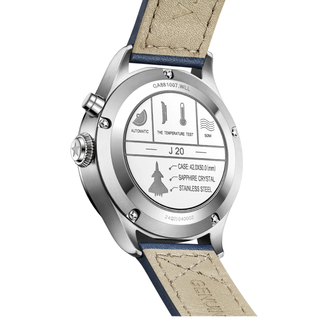 - Case back: 316L stainless steel, screw-in; engraved with J-20 silhouette and watch specifications
