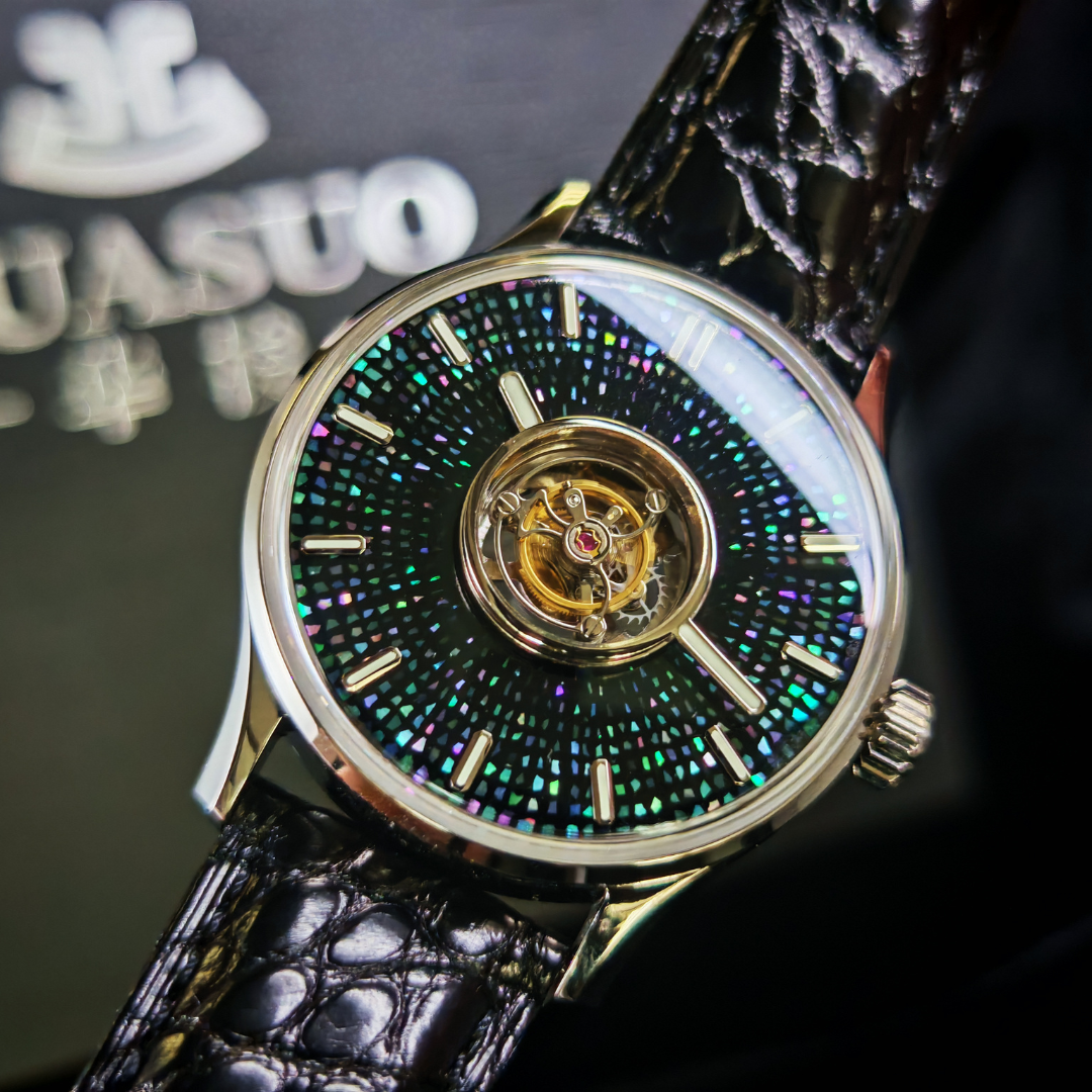 Huasuo integrates China's intangible cultural heritage of lacquer art, traditional mother-of-pearl inlay craftsmanship, and modern mechanical watchmaking technology. Delicate pieces of shell are meticulously inlaid onto the hand-painted lacquer dial, with each unique dial expertly crafted to develop a richer luster over time.