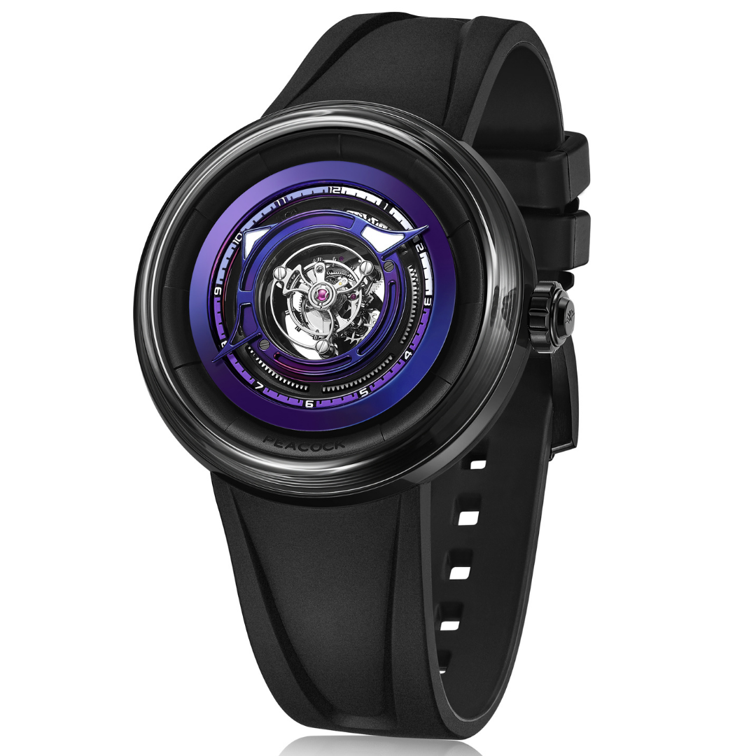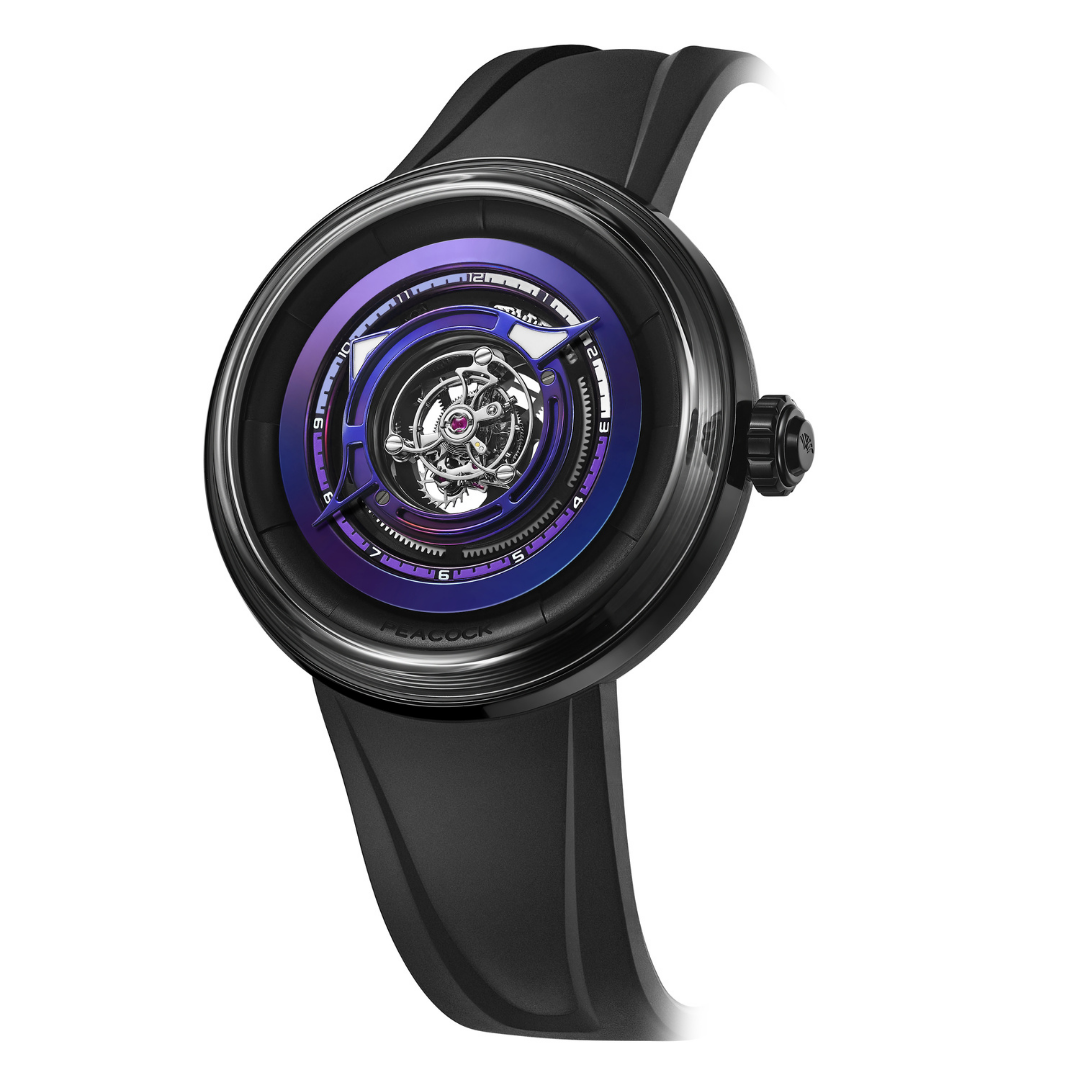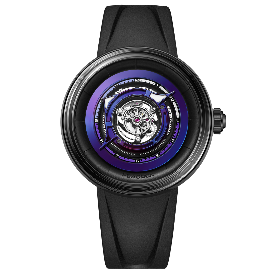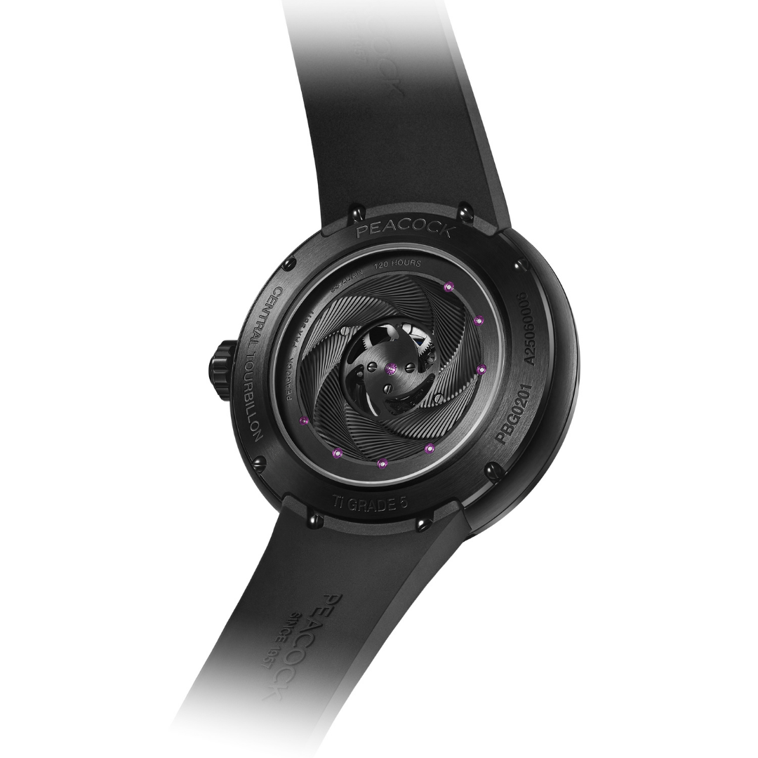 Caliber: Peacock PAX9611 Central tourbillon movement with over 95% transmission efficiency. Four mainspring barrels, 120-hour power reserve