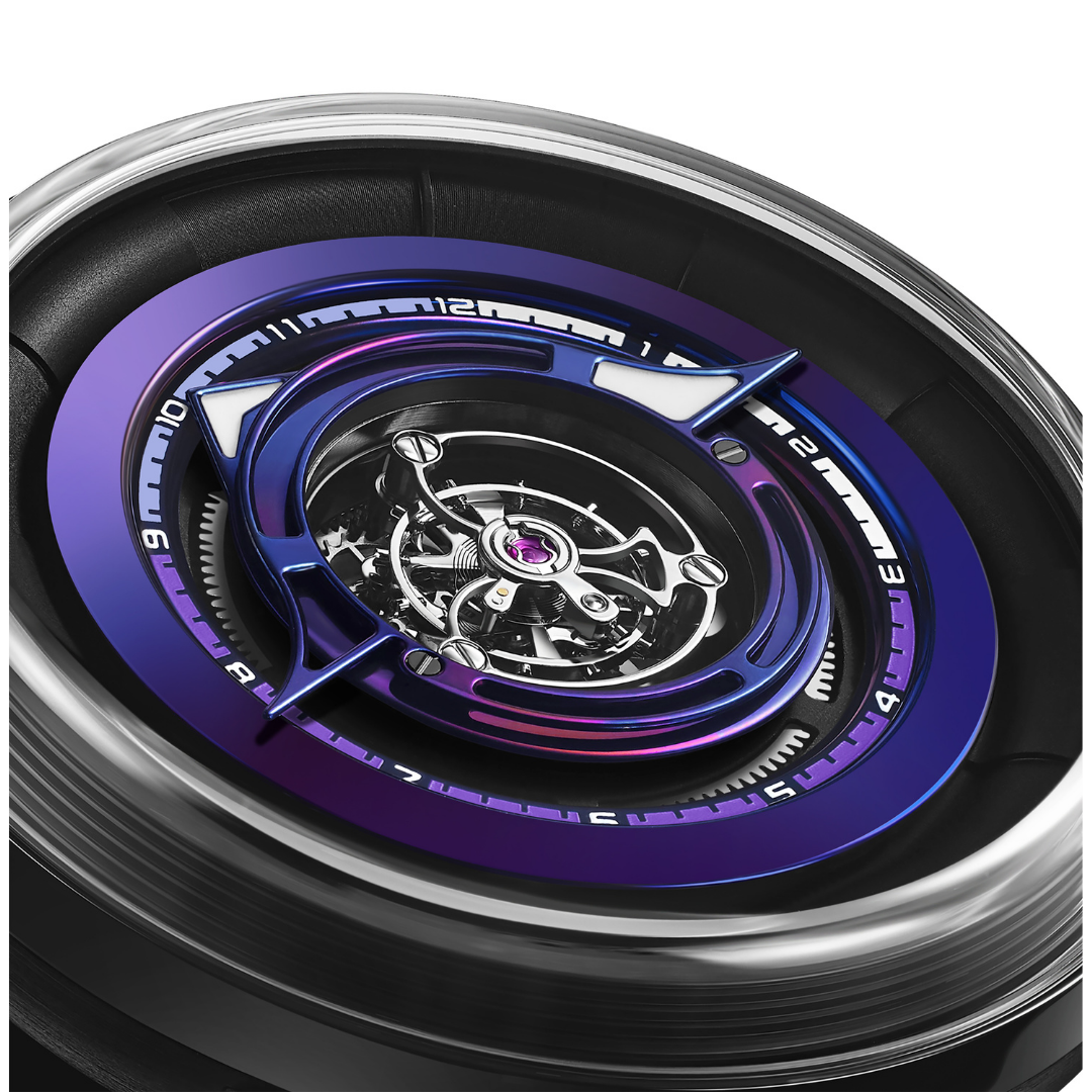Dial: Blue-purple. Titanium. Manually thermal-blued-purpled titanium hands and dial ring
